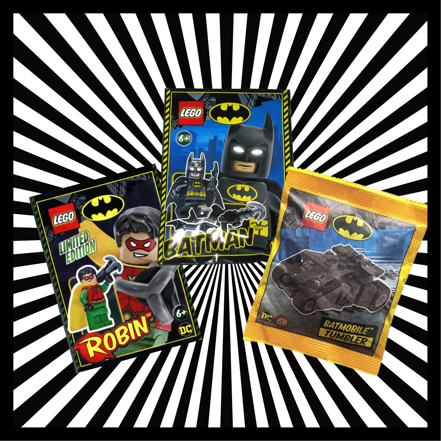 3 unique LEGO® DC foil packs (each with a minifigure or mini-build; varies by pack)