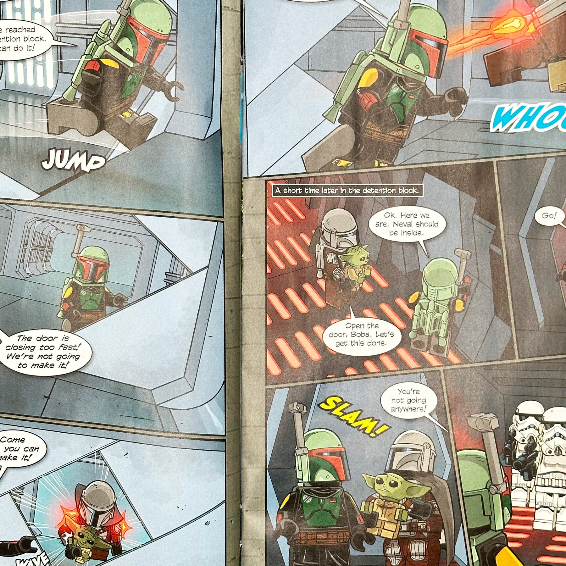 Blast into action with LEGO® Star Wars Magazine Issue #128! This thrilling issue drops you into an epic rescue mission with Mando, Grogu, and Boba Fett as they take on dangerous foes and daring escapes in a fast-paced comic adventure. Packed with vibrant artwork, exciting battles, and classic Star Wars humor, it’s perfect for fans of every age.