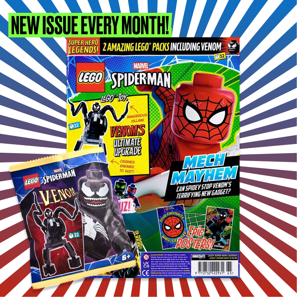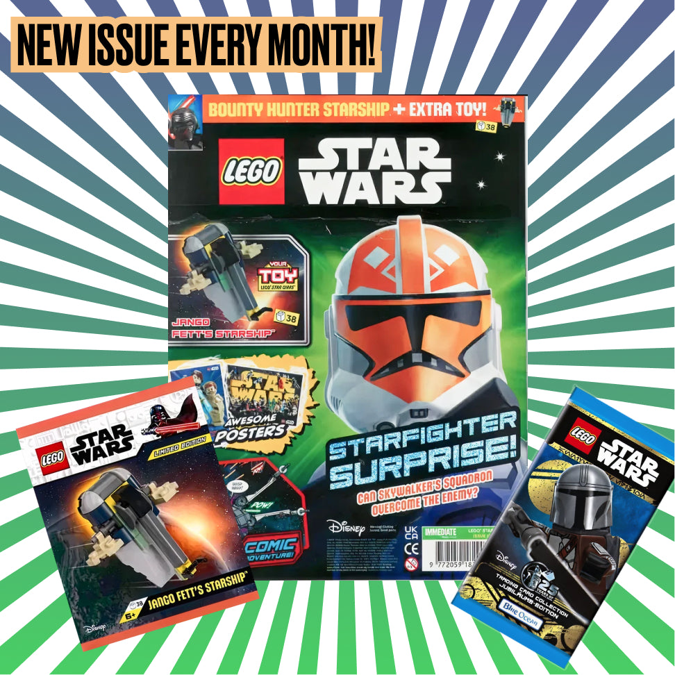 Every delivery includes a LEGO® toy, a full-color magazine packed with comics and puzzles, and a bonus collectible card pack!